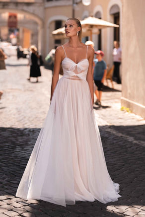 Delicacy at its best. This dress is as soft as a cloud! Featuring a structured bodice with two bows tied in the bust area